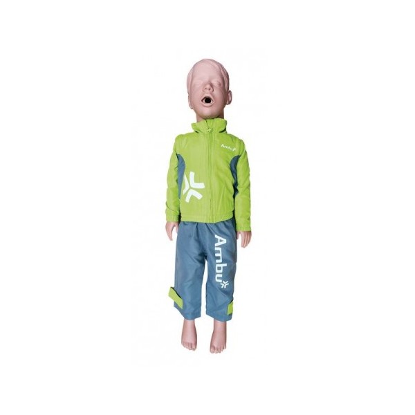 Reanimatiepop AMBU KIND, vergelijkbaar met een kindje van ongeveer 3 jaar oud, geschikt voor het inoefenen van dringende hulpverlening en eerstezorgtechnieken.